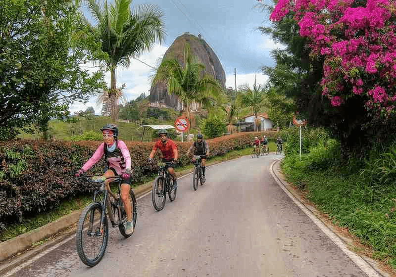 There’s no better way to begin a day in Guatapé than with the free morning ride organized by Casa de Ciclistas every Monday, Wednesday, and Friday. As the sun rises, riders set off through misty backroads and forest trails where birds call, monkeys move through the canopy, and the first light glows over the lake. The ride is gentle, open to everyone, and offers a rare chance to see Colombia’s biodiversity awakening — a moving lesson in connection between people, place, and nature.