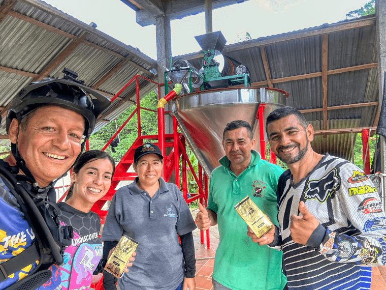 Meet the moment that makes Mono Cuco unforgettable: the trailside coffee experience at Neos—a small, family-run, shade-grown finca tucked right beside the singletrack. You’ll drop your bike, step through fruit trees and coffee rows, and watch the story of your cup unfold in minutes: taste a ripe cherry, feel the slick parchment after pulping, pass the drying tables, then settle in for a clean hand-pour that actually tastes like the forest you just rode through. This isn’t a staged tour; it’s a working farm welcoming riders, and Mountain Bike Colombia is the bridge that makes it personal. While you sip, tanagers and hummingbirds flicker along the treeline, the river cools the air, and your legs reset for the second half of the ride.