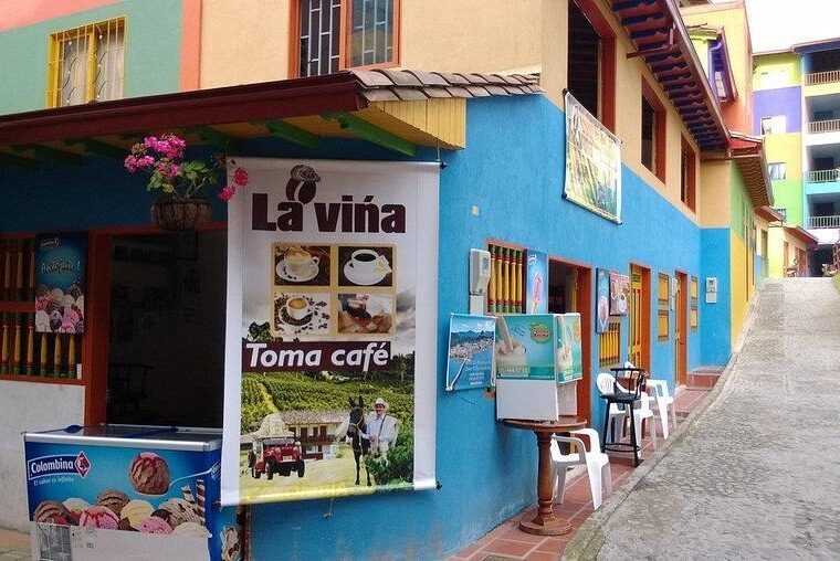 A cozy coffeehouse with views of the cobbled streets, Café La Viña delivers solid coffee and sweet pastries that draw both locals and day-trippers. It’s the kind of best Guatapé café where you can take a quiet pause before the day’s adventures.  Its airy second-floor balcony gives you a lovely perch to watch Guatapé’s painted facades glow in the morning sun. Expect friendly service, a peaceful rhythm, and the smell of freshly ground beans filling the air.
